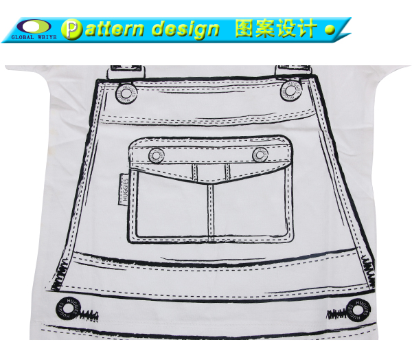 White cartoon new fashion dress for boy, silk screen printing logo,