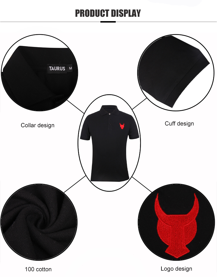 black polo shirt mens sizes from S to 3XL,red embroidery logo, white labels for neck or washing labels,100%polyester pique, bottom slit.